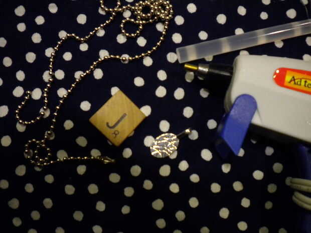 1. scrabble tile (yo tengo la mía de un viejo juego de scrabble que siempre no utilizar probablemente también se puede encontrar uno en una venta de garaje o algo) (usted probablemente querrá utilizar la primera letra de su nombre porque el que tiene más sentido para mi!)