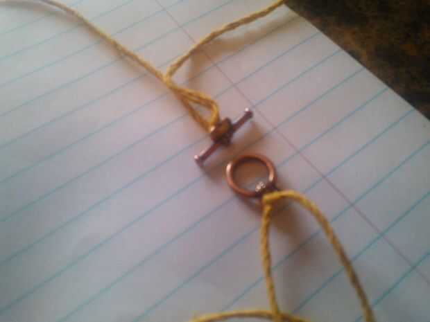 Al final, utilicé un nudo cuadrado y luego medio enganche en los corchetes para evitar que se deshilache. Añadir una gota de pegamento como mejor parezca.
