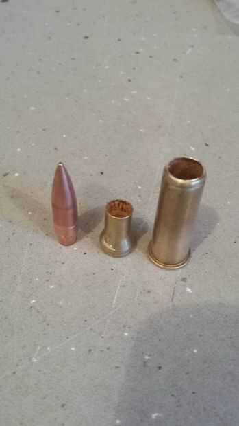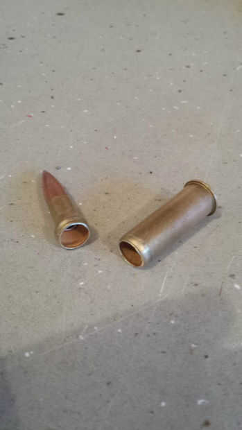 Usted puede comenzar con una bala que pretende cargarse o se puede quitar de un redondo vivo. Se me quitan mis de un 7.62x54R ruso vivo ronda de mi Mosin Nagant. Puede utilizar cualquiera que redondo le deseo. La manera mejor y más segura para eliminar una bala de latón es un tirador de la bala. Tiendo a hacer cosas la manera dura, usé un cortador de tubo de cobre. No te recomiendo hacer los peligros trabajando alrededor vivo arma accionado. Gastar el dinero que no lo hice y compre un extractor. Una vez corte el perfora la bala hacia fuera en una prensa de tornillo de latón.