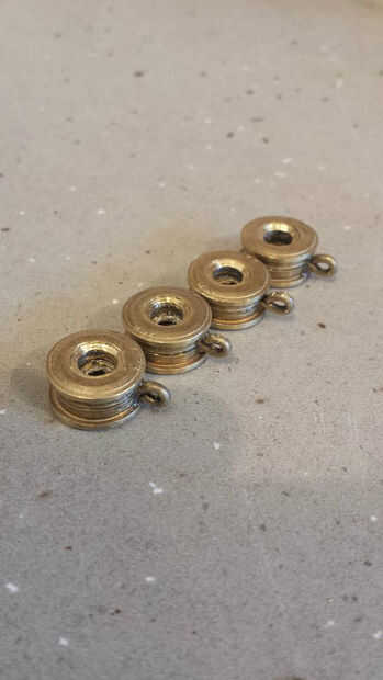 Para agregar más para el collar entonces sólo la bala quise utilizar el back-end del latón para dar más variedad. Para mi proyecto necesitaba 10 extremos. (Utilice únicamente rondas que la cartilla ha sido encendida. No es muy seguro para perforar en una cartilla vivo. Muchas gracias ralbert17) 4 para el collar de 4 para un par que empareja de pendientes y 2 para un par que empareja de mancuernas para mí. Necesita perforar y contador del fregadero la cartilla en todos los extremos antes de cortar los extremos. Utilice un cortador de tubo de cobre para cortar lo más cerca del extremo como sea posible. Lijar el extremo cortado para pegar 8 de 10 puntas en pares y las 2 restantes en espacios en blanco de la mancuerna. Encontré algunos espacios en blanco extras en mi trabajo. Usé gorila parte 2 de epoxy para pegar los extremos juntos. Usted puede soldar los extremos de los 2 juntos pero no quiero que el acabado de ruff de latón para modificar con el calor. Ahora perfore un agujero pequeño en la costura de los 2 extremos después de que el epoxi haya curado completamente. Usé un 1/16" bits. No he podido encontrar un ojete que emparejó el acabado de los extremos y era del tamaño adecuado por lo que he modificado algunos saltar anillos para adaptarse a mis necesidades. Utilice el mismo epoxy para pegar los ojales en los extremos.
