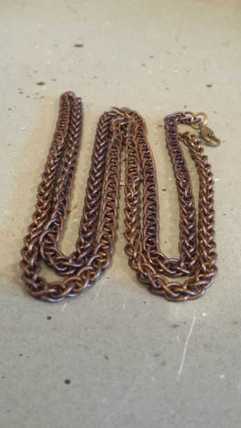 He utilizado una cadena de latón/bronce de 30". Comience con la viñeta principal en la cadena de alimentación. A continuación he añadido algunos cráneos de latón con latón pequeño saltan anillos para conectarlos a la cadena. Luego añadí que el latón termina con gemas de vidrio con más anillos de saltos. Para terminar de empujar la bala tiró al principio en el latón vacío. Tuve la suerte de que mi bala "encajado" en su lugar y se quedó firmemente en su lugar. Si desea puede pegar en su lugar.