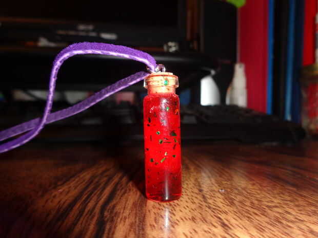 Pase el cable del cuero a través del anillo sobre el corcho. Cortar a la longitud que desee, ate para arriba y disfruta!
