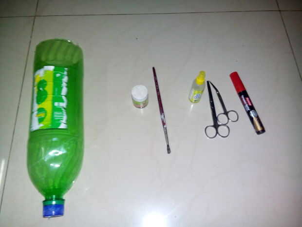 1) UNA BOTELLA DE PLÁSTICO NORMAL (1 LITRO). HABÍA USADO ESTA BOTELLA DE PLÁSTICO DE MI PROYECTO ANTERIOR, POR ESO SE HA CORTADO DE LA PARTE INFERIOR. (CANTIDAD = 1).