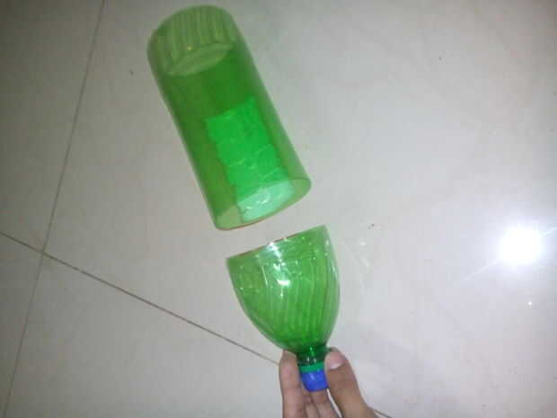 ESTO ES COMO LA BOTELLA DE PLÁSTICO SE HA REDUCIDO A DOS PARTES CORTANDO LA BOTELLA A TRAVÉS DE LA LÍNEA QUE YO HABÍA DIBUJADO EN TI COMO SE MUESTRA EN LAS IMÁGENES ANTERIORES.