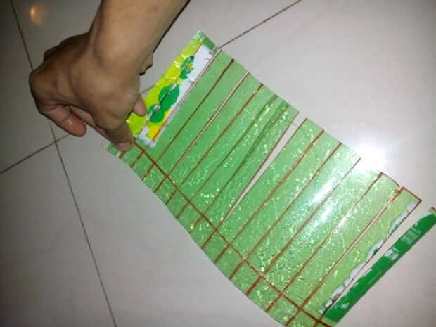 DESPUÉS DE CORTAR A TRAVÉS DE LAS LÍNEAS RECTAS, APLICAR UNA CAPA DE PEGAMENTO EN LA PARTE ENTERA DE LA PARTE PLÁSTICA Y ESTO ES COMO DESPUÉS DE APLICAR LA CAPA DE PEGAMENTO EN EL SE MUESTRA EN LAS IMÁGENES ANTERIORES.
