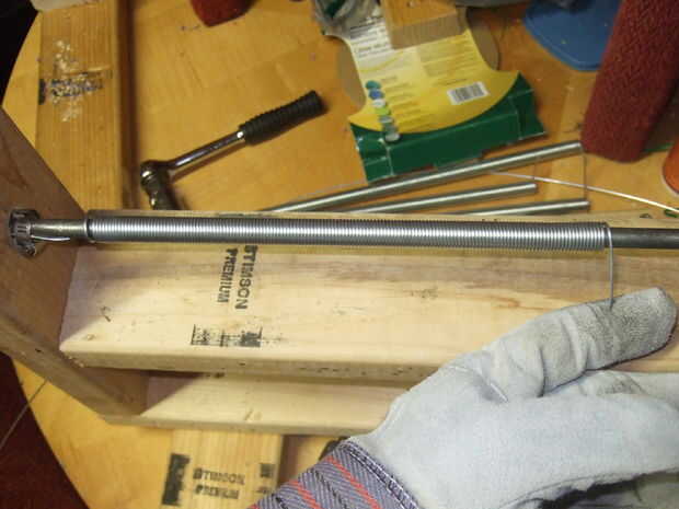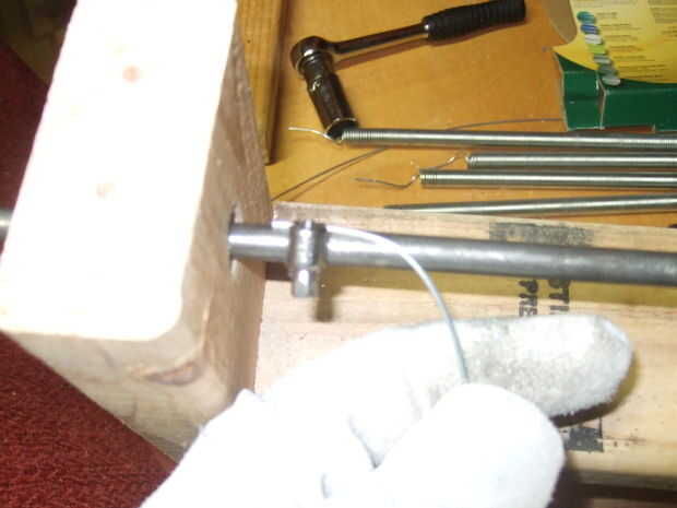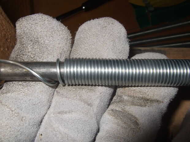 Gire la espiga con el taladro lentamente hasta que tenga un resorte de alambre.