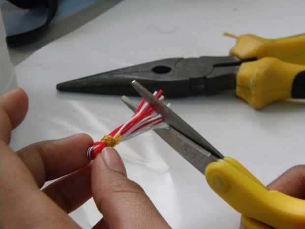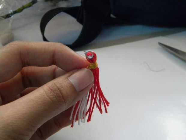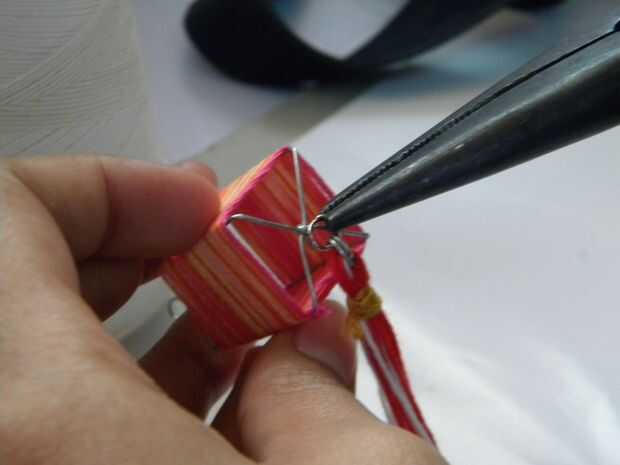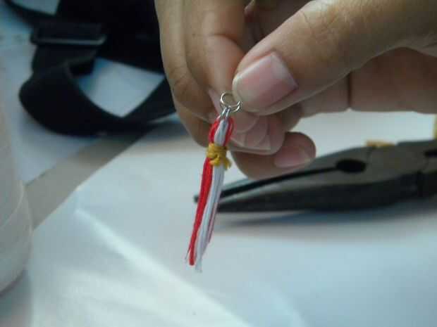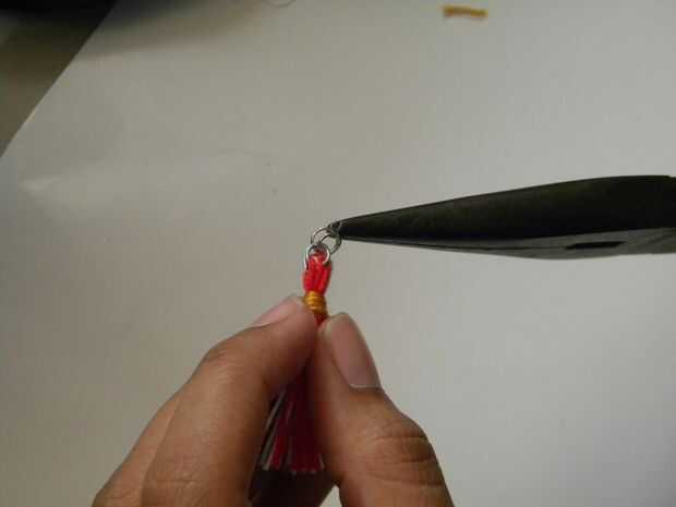 Después de la espiga tenía ya un anillo de salto, corte el exceso de hilo/cordel y enderezar el extremo de la borla.