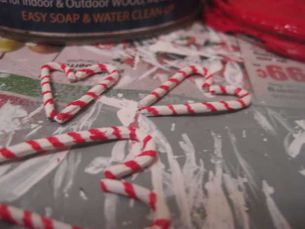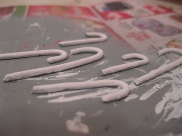Ahora tus bastones de caramelo son seco toma su pintura blanca o pintura de aerosol y pintura blanca.