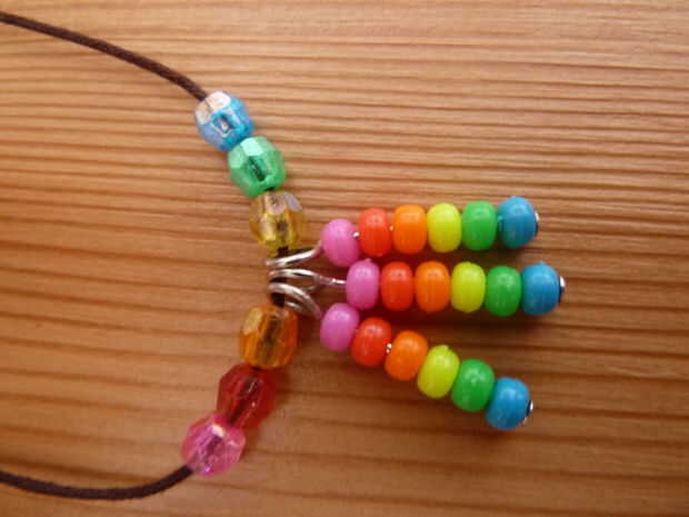 Agregue los tres primeros granos a cadena de thew. Añadir el eyepins.