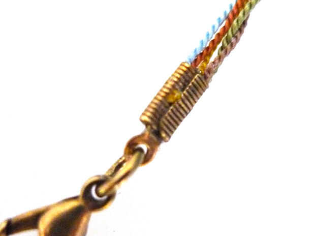 Colocar una muy pequeña gota de pegamento dentro de uno de la tapa sobre los extremos. Coloque el extremo de cada filamento dentro de la tapa sobre el extremo y presione cada lado en el uso de un par de alicates de cadena. Repita en el otro extremo de los filamentos con la segunda tapa sobre el extremo.