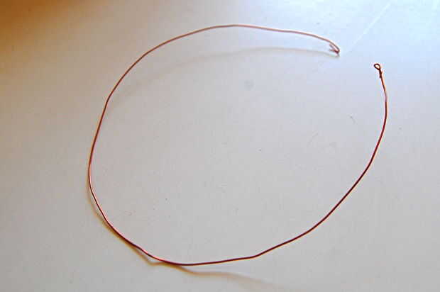 Formar en la forma correcta alrededor de su cuello, luego use un alicate para hacer uno de los extremos en un ojo y el otro en un gancho.