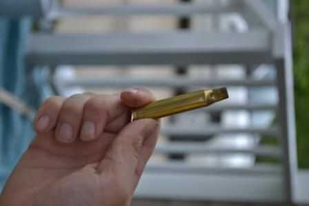 actualización: nuevas fotosTodavía tengo una pequeña bolsa de conchas de bala de cuando mi hermano me pidió hacer mancuernas para su boda. Recientemente se utiliza para hacer una flor. Aquí le damos otra oportunidad en hacer uso de cáscaras.Me martil