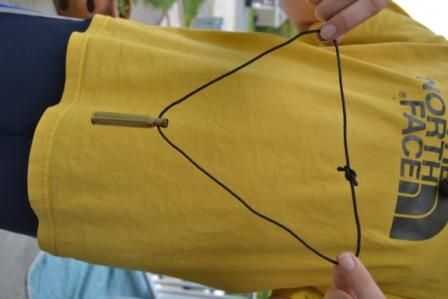 Tomar la cadena y ponerla a través del agujero en la cáscara. y luego hacer la cadena.