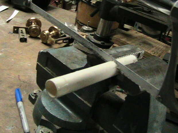 Corte una longitud de 2 a 2.5 pulgadas de su PVC utilizando una herramienta de sierra para metales o rotatorio. Lije el lado áspero que sólo recortas para asegurar que van a quedar plano.
