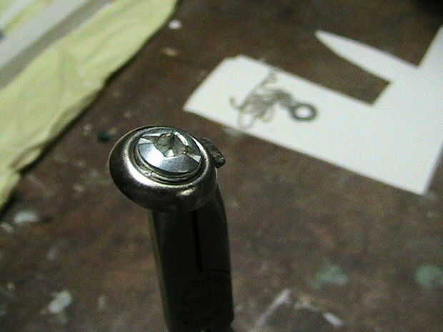 Mezclar una pequeña porción de epoxy. Ahora toma la arandela pequeña y el borde del agujero con la pasta que has mezclado a la capa. Coloque la tuerca o remache en el agujero, asegurándose de que esté centrado y descansando cómodamente en el epoxi.