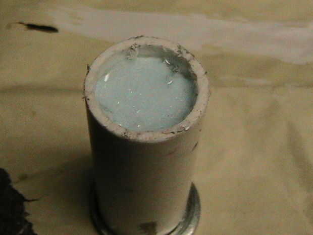 Corte de un círculo de cartulina y colocarlo por la parte superior de su cuerpo de la cáscara. Sellado con epoxi.