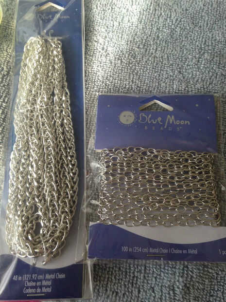2) cadena que siempre color o estilo que usted elija, para este collar escoger plata. También opté por usar más de un tipo de cadena para este collar, puede utilizar una si lo prefiere.