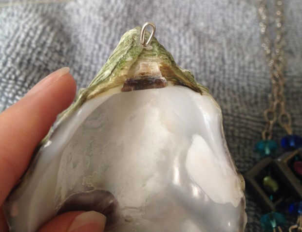 1) empezar por perforar el agujero de su concha de ostra. uso el más pequeño taladro lo puede un 1/16 o si usted puede conseguir ahold de ella un 1/32 es el mejor.