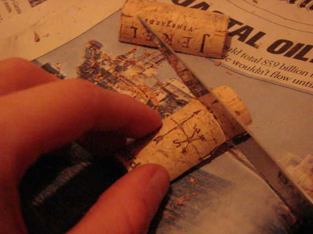 Quieres forma tu corcho para adaptarse a su diseño. Yo no cultivo collar "Los prisioneros", pero la veleta tenía algunas letras que necesita eliminar. Asegúrese de que dejar espacio en la parte superior para hacer el agujero.