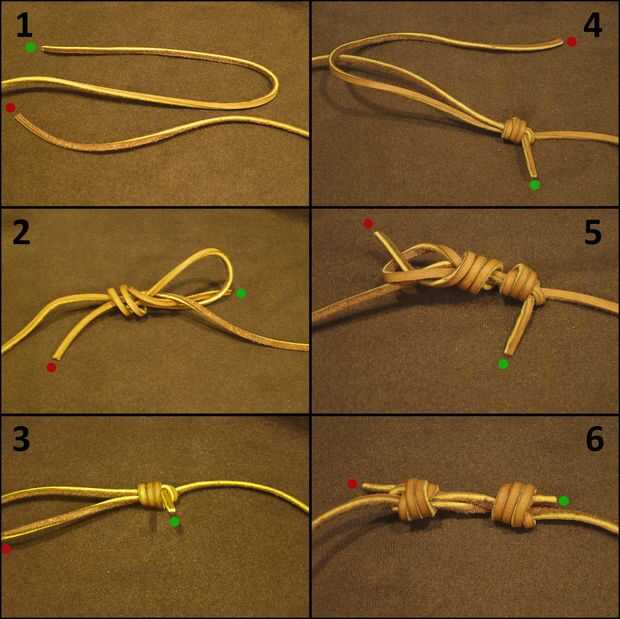 Ahora repita con el otro extremo de la cadena (rojo), bucle de los bucles alrededor del primera final de la cadena (verde). Apriete. (Pasos 4-6)