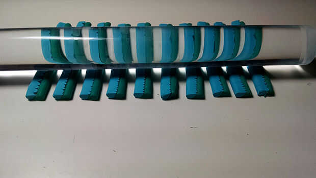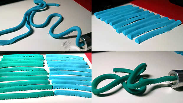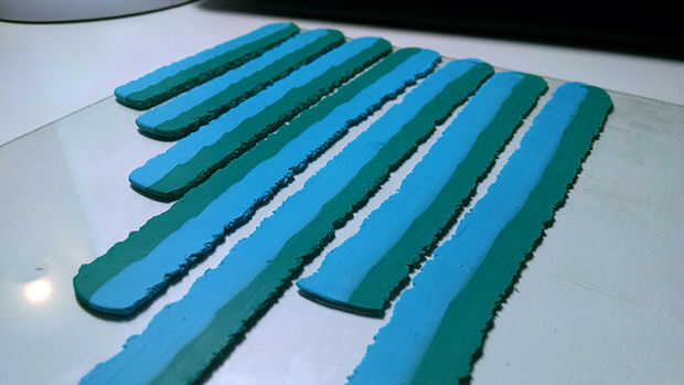 - La extrusora de la carga y girar hacia fuera de la arcilla en cada color. Recuerde limpiar entre colores. Sí, se mezcla los colores, pero no quieres manchas inesperadas