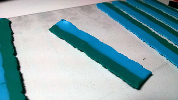 - Usted comenzará a ver una mezcla ligera, pero no mucho. También es muy probable que la banda todavía no es suficientemente amplia como para su corte. Así que repetir el doblez y método del rodillo hasta obtener la mezcla deseada y el ancho. ¿Sabe dónde doblar los dos extremos juntos y presiona juntos? sí, hacer eso.