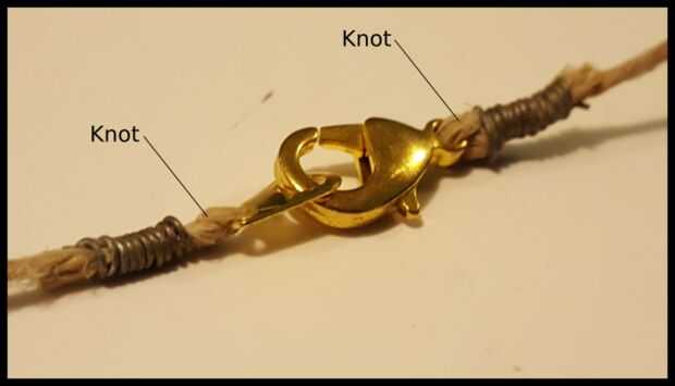 • Hilo cáñamo a través tanto del Corchete de la joyería piezas y haga un nudo.