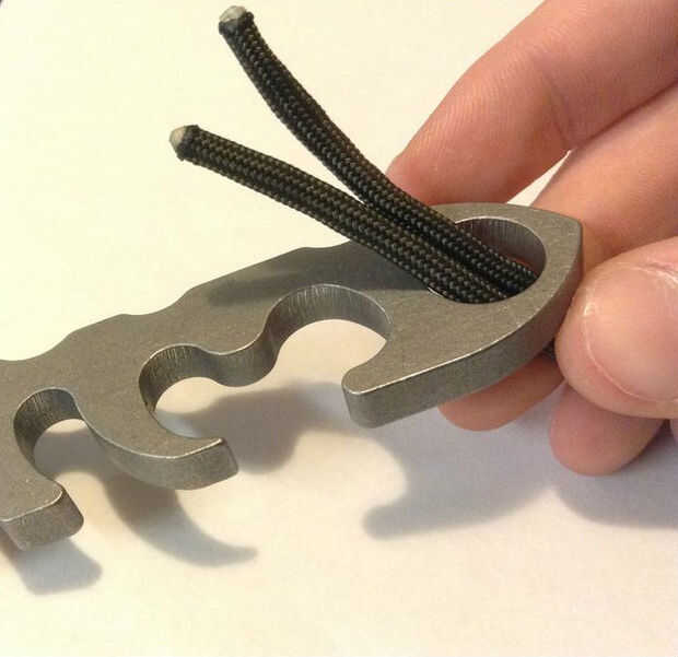 Esta longitud de la cuerda podría permitir el empate de engranaje colgar más bajo que usted prefiere. Sugiero a partir de esta longitud, a continuación, recorte el paracord según sus deseos. Mientras que el bucle es lo suficientemente grande como para deslizarse sobre mi cabeza, me parece más divertido hacer mientras el paracord ya está en mi cuello. Puede que esto sea cierto para usted.
