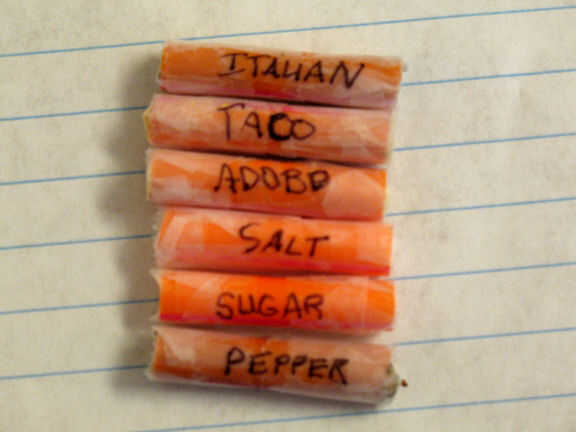 Poner la cinta scotch, una de las aperturas de paja. Llenar con el sabor de su elección y luego aplique la cinta scotch en la otra apertura para sellar la paja. Etiqueta de la paja para evitar la confusión. Repita con los otros pedazos de paja.