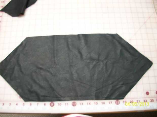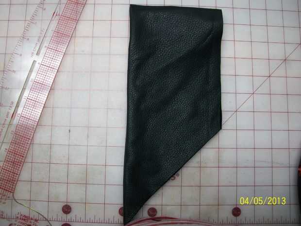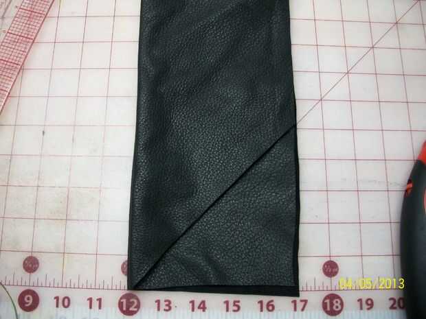 Dobla la tela a lo largo (lado largo), doblar nuevamente por la mitad (lado largo).  MARCA una diagonal en el extremo de bordes plegados.  CORTE con cuchilla giratoria.