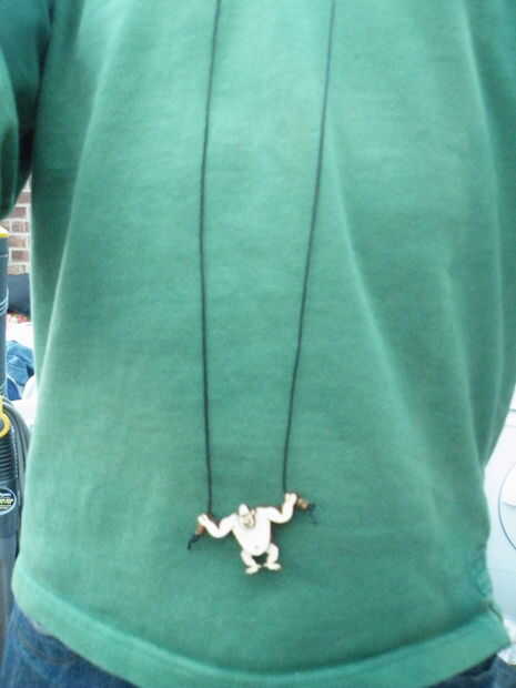 Obviamente, el gorila se lleva alrededor de su cuello - debe colgar en alguna parte alrededor de altura cinturón-hebilla/ombligo.