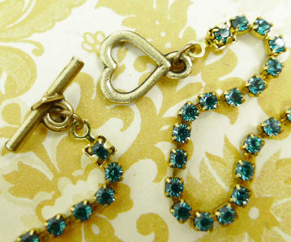 Usando sus alicates de cadena suavemente abrir un anillo de salto y fijar la barra de la palanca a un extremo de la cadena de cristal por el anillo del salto a través del lazo en el extremo engarzado en y a través del bucle en la barra de la palanca de alimentación. Cierre firmemente. Repita el procedimiento para fijar el corazón alternar al otro extremo del collar.
