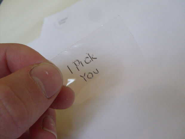 Una vez las cartas tomar un pedazo de cinta transparente y poner en las palabras, hacer que todos las letras pegan luego coloque la cinta en el pico.