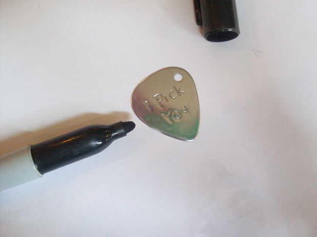 ¿cansado de perder tus selecciones de la guitarra? Heres bien una manera de no perderlos... Uhhh algo como eso...Paso 1: Elementos que se necesita Necesita1. un marcador Sharpie2. un clavo Filer3. una guitarra Pick4. tarjeta de crédito5. tijeras (no