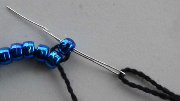 Entonces simplemente Repita los pasos anteriores para puntada de nuevo. Mi nuevo es plata, sólo asegúrese de que llevar el hilo a través de su nueva puntada cada vez por lo que es leer para hacer la puntada siguiente. Continuar hasta la fila se hace