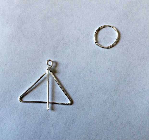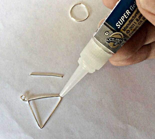 Pegamento el sedal de alambre en el triángulo. O si lo prefiere, hacer una línea más larga y curva elctronico en triángulo en lugar de pegar. Esta forma es más difícil, pero mantiene de caerse.