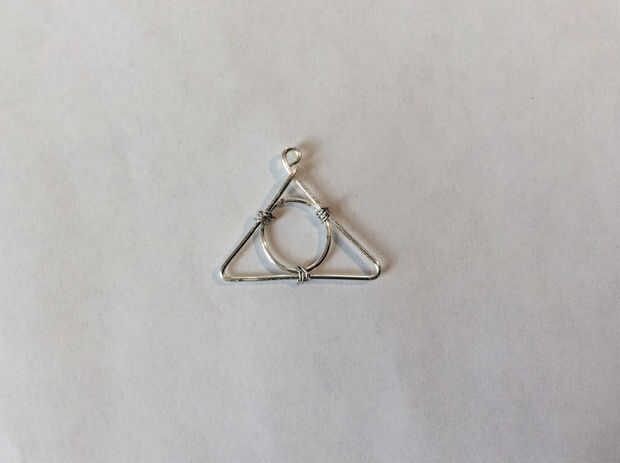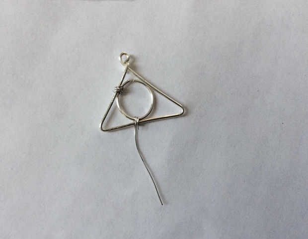 Usando alambre de plata de calibre 28, enlazar el círculo dentro del triángulo. Una cadena y saltar anillo triángulo y un corchete al final de la cadena. También puede hacer dos y sujete a ganchos de pendiente.