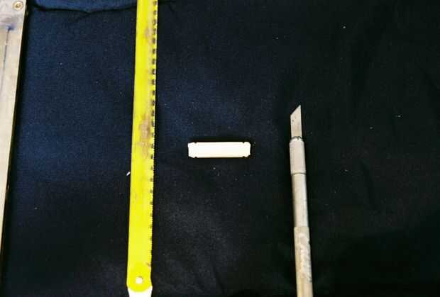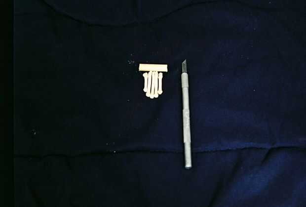Línea de los huesos que vas a utilizar contra la espiga y dejar aproximadamente 1/8 de pulgada de espacio extra por cualquier lado, luego hacer el corte. Usando su cuchilla x-acto suave de los extremos ásperos, usted también puede usar papel de lija u otras herramientas para obtener resultados más finos.