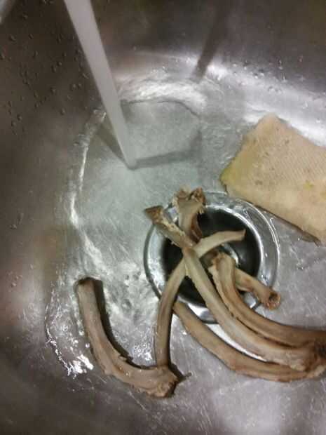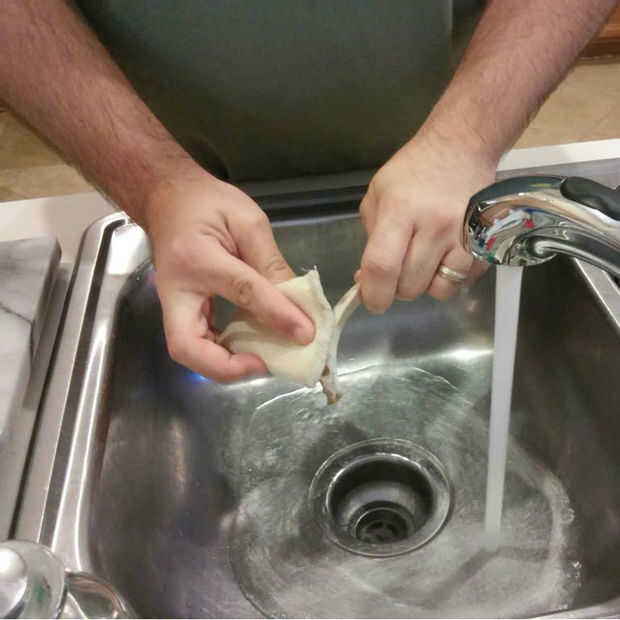 Una vez hecho empapando, quite los huesos del recipiente y limpiar con detergente y una esponja para quitar cualquier exceso duro eliminar pedacitos de carne o salsa.