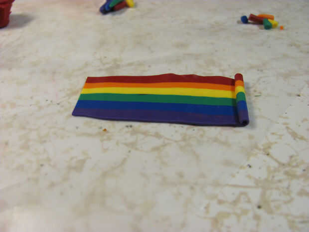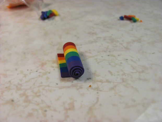 A partir de un extremo rodillo su arcilla para que tenga un palillo rayas.