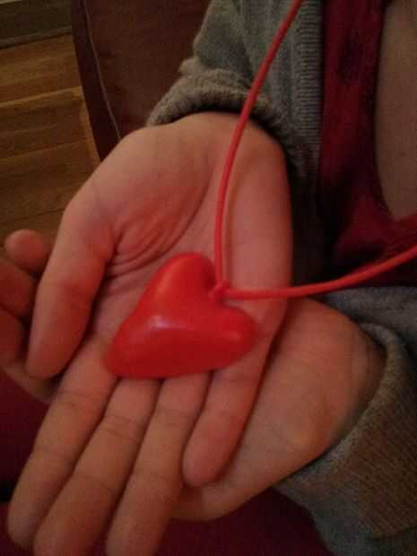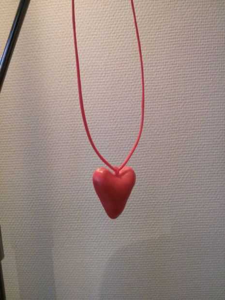 Forma un corazón y no olvides hacer un agujero para el collar de la forma "cordón"