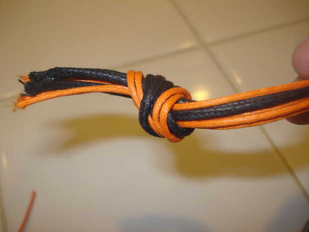 2.) atar un nudo con todas las ocho piezas de cuerda.