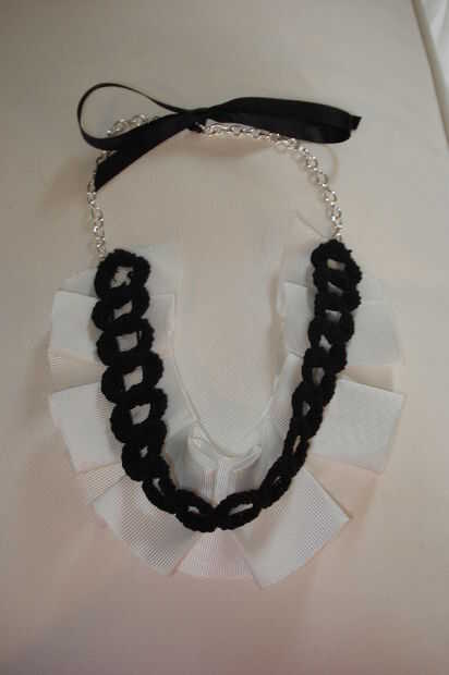 este tutorial es relacionarse con otra pieza de joyería hecha a mano simple; te presentamos detallada descripción sobre este proyecto de collar babero diy.Materiales y herramientas:Tela blancaCadena de oroPerno de seguridadMáquina de coserEncendedorP