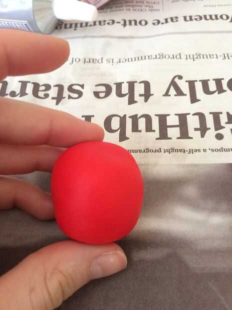 -Rodar un trozo de arcilla roja en forma de bola. Aproximadamente la mitad de un cuadrado de arcilla roja utilicé para la base.