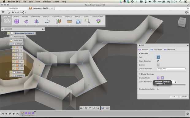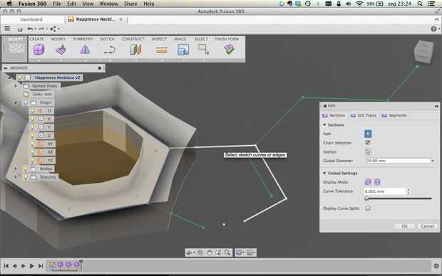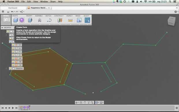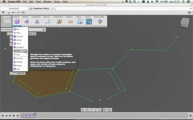 Utilizando el botón de Create Form usted puede ir a un medio ambiente de forma libre, y utilizando la función de pipa crear topologías complejas partiendo de las curvas de dibujo que acaban de producir.