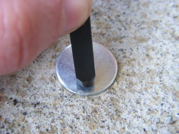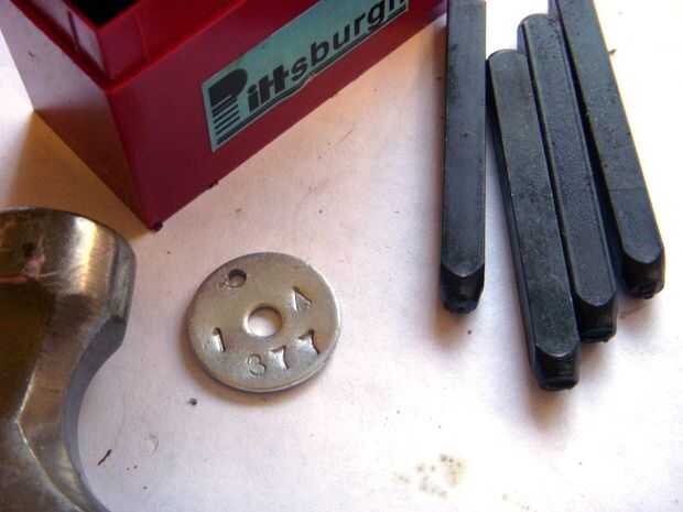 Debo señalar que algo de perforación en metal requiere una superficie de trabajo muy duro. Personajes de perforación en la lavadora tuvo que ser hacia fuera en la acera, como la mesa de trabajo normal absorbe demasiado el impacto y no mostrar las letras.
