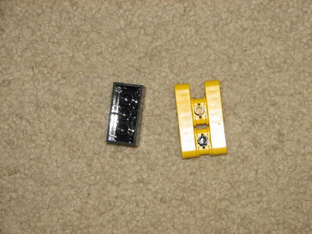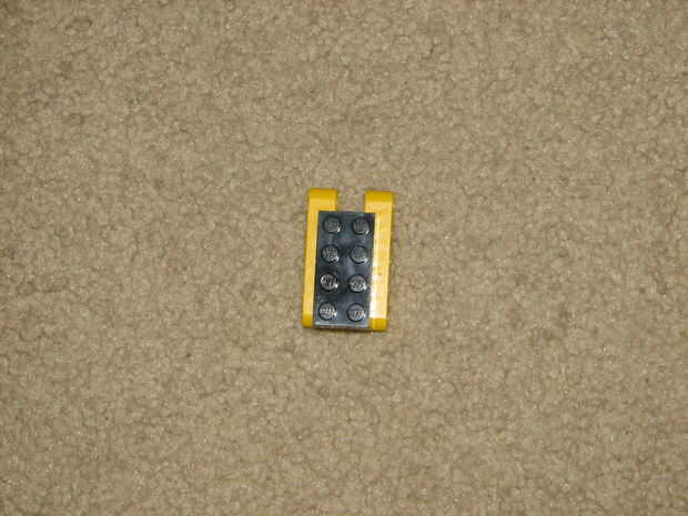4. ahora tome su ladrillo de 2 x 4 y alinee los conectores con los orificios superior e inferior en la parte posterior del ladrillo. Deslice allí, cadena la cadena/cadena a través de los agujeros y tienes tu collar!