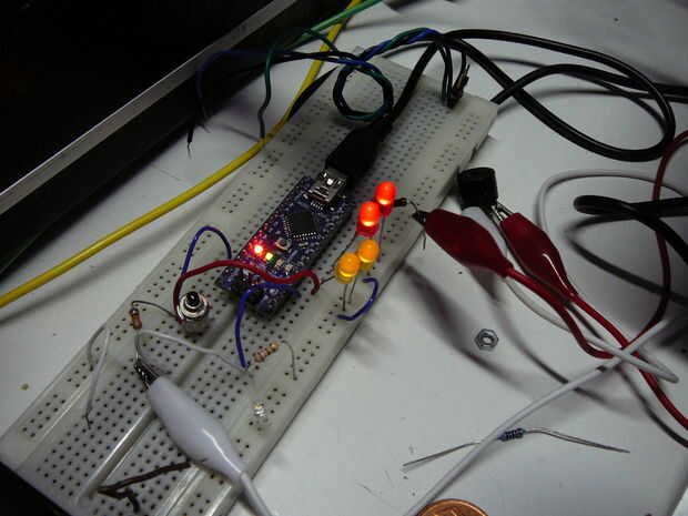 Prueba se realizó en un protoboard con el Arduino mismo sentado ahora en el cuello.