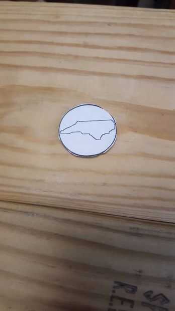 Con mi idea firmemente cimentado en mi mente fui en línea y encontrar una imagen escalable de la frontera de NC y tamaño hasta forma un Kennedy medio dólar de los E.e.u.u. (diámetro = 30,6 mm). Imprimí la imagen y recórtalo. Entonces doble Revisé su circunferencia contra mi medio dólar sólo para asegurarse de que mis matemáticas y mis habilidades de Paint.Net fueron en blanco.