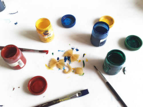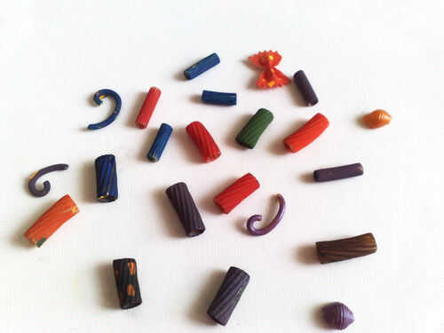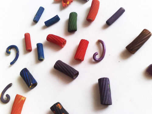 Pintar los macaronis con su color favorito de aceite. y espere hasta los macaronis seco. Ahora tienes muchos macaronis de color.